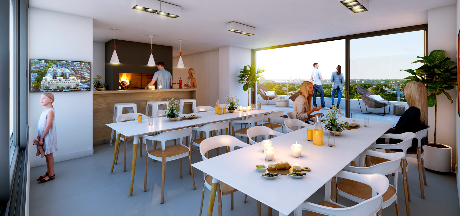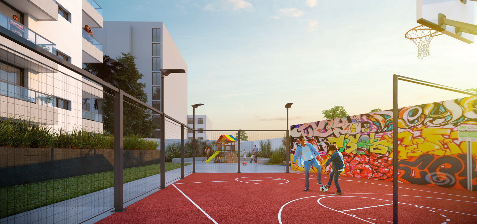 El programa residencial se compone de unidades de 1, 2 y 3 dormitorios, existiendo unidades de 2 y 3 dormitorios con parrilleros individuales.